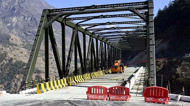 जोशीमठ-मलारी हाईवे पर सीमा सड़क संगठन (बीआरओ) ने ढाक नाले में स्टील गार्डर पुल तैयार
