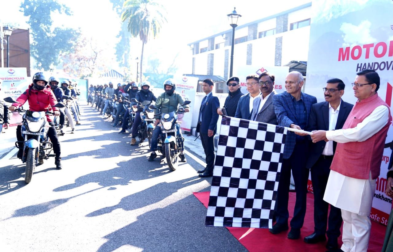 मुख्यमंत्री श्री पुष्कर सिंह धामी ने मुख्यमंत्री आवास में हीरो मोटोकॉर्प लि. द्वारा राजस्व विभाग को उपलब्ध कराई गई 320 मोटर साइकिलों का फ्लैग ऑफ किया।