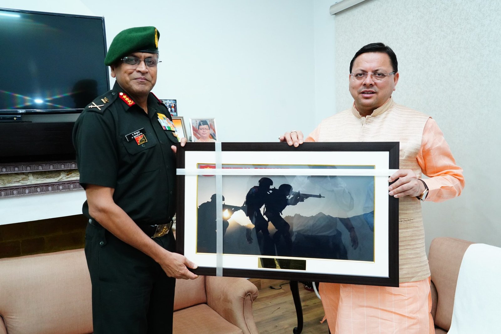 मुख्यमंत्री श्री पुष्कर सिंह धामी से मुख्यमंत्री आवास में ले जनरल अनिंदया सेनगुप्ता, जीओसीइनसी, सेन्ट्रल कमाण्ड ने भेंट की।