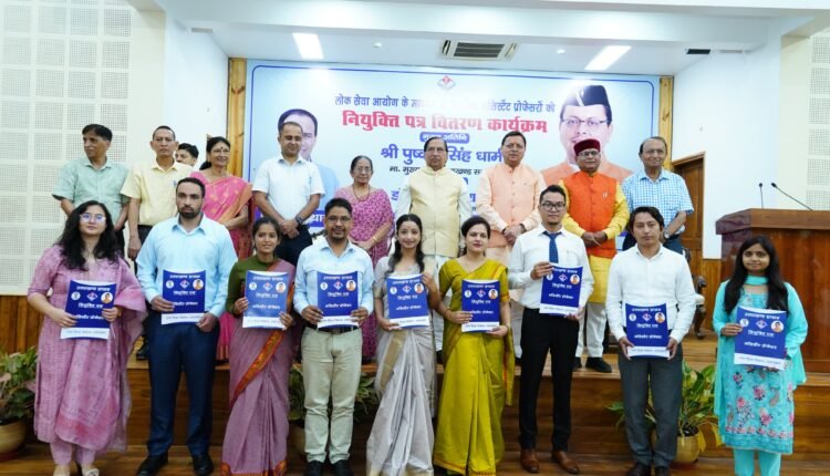 Dehradun: मुख्यमंत्री श्री पुष्कर सिंह धामी ने मंगलवार को मुख्यमंत्री आवास स्थित मुख्य सेवक सदन में उच्च शिक्षा विभाग के अन्तर्गत लोक सेवा आयोग, उत्तराखण्ड से चयनित 72 असिस्टेंट प्रोफेसर को नियुक्ति पत्र प्रदान किये। समाजशास्त्र, अर्थशास्त्र और अंग्रेजी विषय में चयनित असिस्टेंट प्रोफेसर को आज नियुक्ति पत्र प्रदान किये गये। इस अवसर पर मुख्यमंत्री ने राज्य के मेधावी छात्रों के लिए नेशनल इंस्टीट्यूशनल रैंकिंग फ्रेमवर्क (एन.आई.आर.एफ) इंस्टीट्यूट में 50 हजार रुपये की धनराशि प्रदान किये जाने के लिए पोर्टल का शुभारंभ भी किया। मुख्यमंत्री ने नियुक्ति पत्र प्राप्त करने वाले सभी अस्टिंट प्रोफेसर को बधाई देते हुए कहा कि शिक्षार्थियों के भविष्य निर्माण में शिक्षकों की महत्वपूर्ण भूमिका होती है। आपके पास हमारे युवाओं का भविष्य निर्माण करने की अहम जिम्मेदारी है। उन्होंने कहा कि इन नव चयनित असिस्टेंट प्रोफेसर का यह पहला पड़ाव है। अब आपके पास अपने कार्यक्षेत्र में श्रेष्ठ प्रदर्शन से बच्चों के भविष्य को संवारने की महत्वपूर्ण चुनौती है।