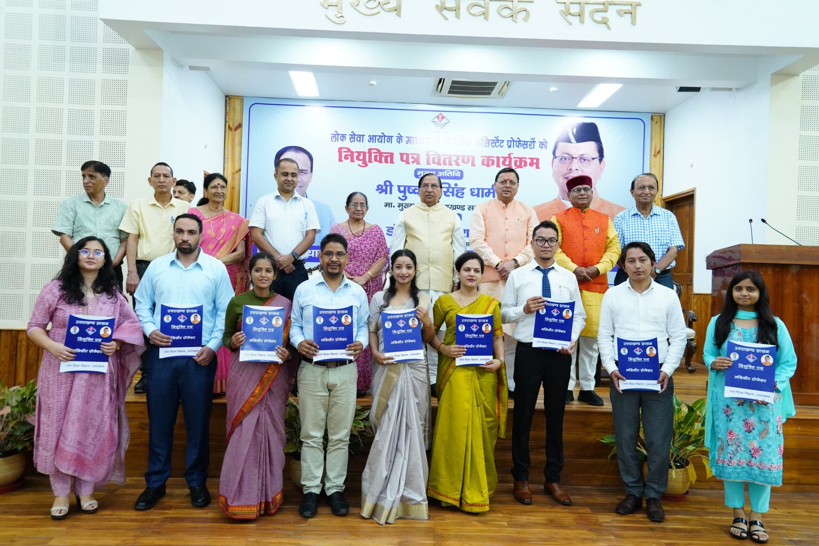 मुख्यमंत्री श्री पुष्कर सिंह धामी ने मुख्यमंत्री आवास स्थित मुख्य सेवक सदन में उच्च शिक्षा विभाग के अन्तर्गत लोक सेवा आयोग, उत्तराखण्ड से चयनित 72 असिस्टेंट प्रोफेसर को नियुक्ति पत्र प्रदान किये।