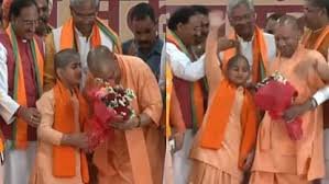 यूपी के मुख्यमंत्री योगी आदित्यनाथ के बालस्वरूप में मंच पर पहुंचा बच्चा