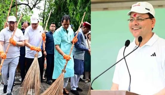 सीएम धामी ने मंत्रियों संग लगाई झाड़ू, वेक्यूम बेस्ड क्लीनिंग मशीन को हरी झंडी दिखाकर किया रवाना