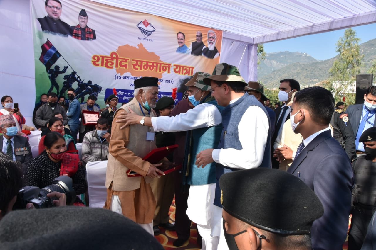 सैनिक कल्याण मंत्री गणेश जोशी ने कहा कि देश की सेना में हर पांचवा सैनिक उत्तराखण्ड से होता है। 63 करोङ  रूपए की लागत से भव्य सैन्य धाम का निर्माण किया जा रहा है। 15 नवम्बर से 15 दिसम्बर तक एक माह तक शहीद सम्मान यात्रा का आयोजन किया गया। प्रदेश में 1734 शहीदों के घरों से पवित्र मिट्टी एकत्र की गई। इस पवित्र मिट्टी का उपयोग सैन्य धाम में किया जाएगा। हम किसी शहीद को वापिस नहीं ला सकते, परंतु शहीदों का सम्मान और उनके परिवार की देखभाल करना हमारा परम दायित्व है।
