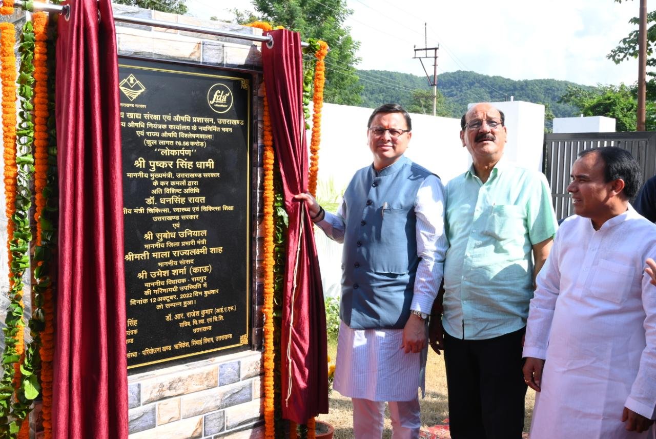मुख्यमंत्री श्री पुष्कर सिंह धामी ने सहस्त्रधारा रोड स्थित डांडा लखौड में खाद्य संरक्षा एवं औषधि प्रशासन विभाग के नवनिर्मित एफ.डी.ए. भवन व राज्य औषधि परीक्षण प्रयोगशाला का लोकार्पण किया।