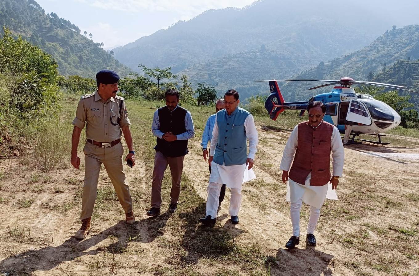 मुख्यमंत्री पुष्कर सिंह धामी ने बुधवार को सिमडी, पौड़ी में हुई बस दुर्घटना स्थल का जायजा लिया।