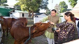 सीएम धामी ने मुख्यमंत्री आवास में गायों की पूजा की
