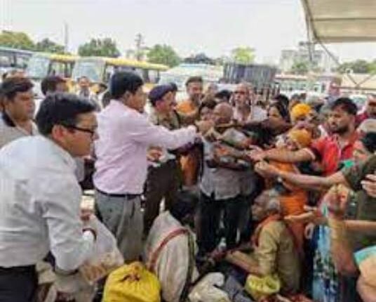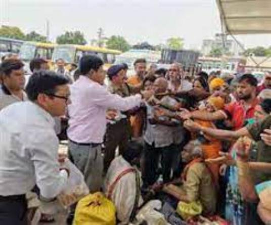 जिलाधिकारी ने बस टर्मिनल कंपाउंड में रुके श्रद्धालुओं को स्वयंसेवी संस्था की ओर से उपलब्ध कराए गए पानी की बोतल और बिस्कुट वितरित किए। पंजीकरण कार्यालय जाकर उन्होंने आवश्यक जानकारी जुटाई।