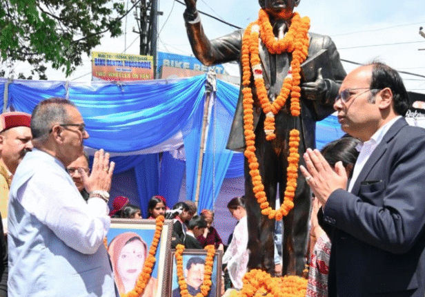 मसूरी। कैबिनेट मंत्री गणेश जोशी ने आज मसूरी स्थित अम्बेडकर चौक में भारतीय दलित साहित्य अकादमी द्वारा भारत रत्न बाबा साहेब डॉ. भीमराव अम्बेडकर की जयन्ती के अवसर पर आयोजित छात्रवृत्ति एवं सम्मान समारोह में प्रतिभाग किया। इस अवसर पर मंत्री गणेश जोशी ने डॉ. भीमराव अम्बेडकर की प्रतिमा पर माल्यार्पण कर भावपूर्ण नमन करते हुए श्रद्धांजलि अर्पित की।