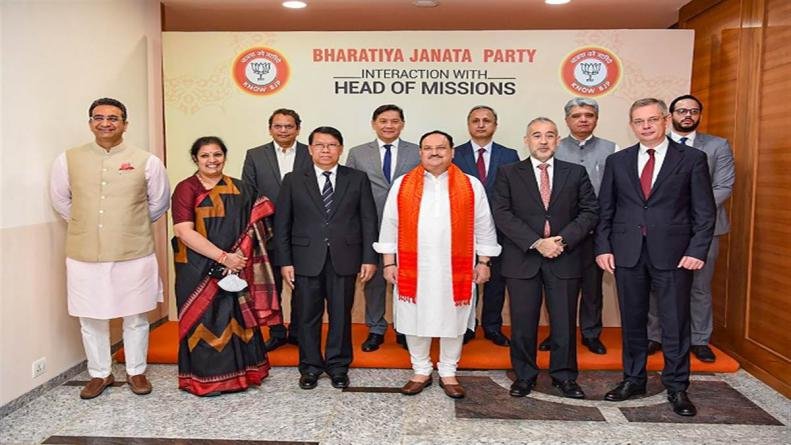 भाजपा के राष्ट्रीय अध्यक्ष जेपी नड्डा ने शनिवार को लाओस, रूस, क्यूबा, ताजिकिस्तान, किर्गिस्तान, उज्बेकिस्तान और तुर्की के दूतों से बातचीत की थी। इस महीने की शुरुआत में हुई पिछली बैठक तीन घंटे तक चली थी। भाजपा की विदेश मामलों की शाखा के प्रमुख विजय चौथाईवाले ने बातचीत के बाद एएनआई को बताया कि नरेन्द्र मोदी सरकार के तहत भारत की वैश्विक पहचान बढ़ी है और दूतों को पार्टी के इतिहास और दृष्टि से परिचित कराने की जरूरत है।