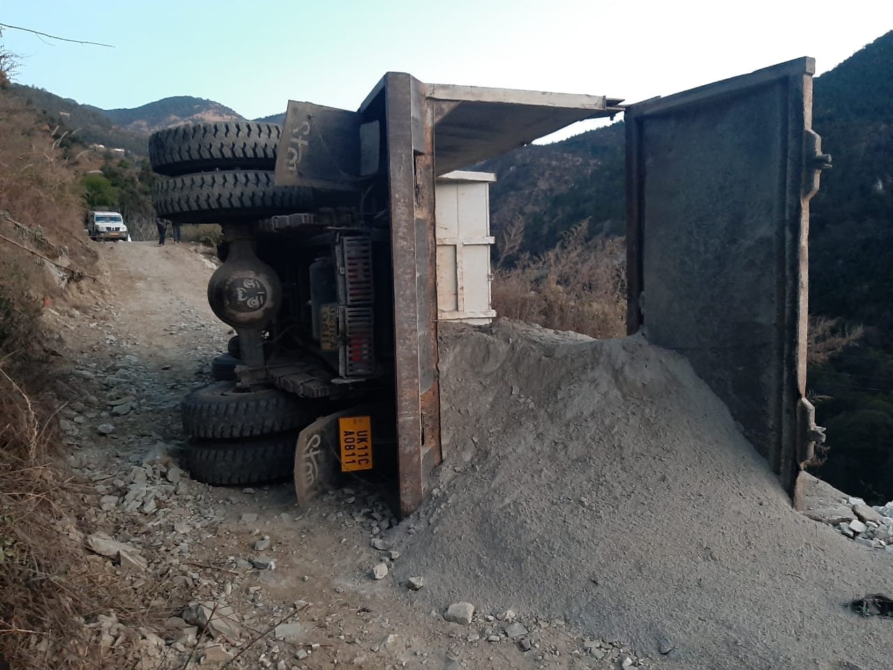 बताया जा रहा है कि डंपर जीआईसी वाण में चल रहे निर्माण कार्य के लिए रेता लेकर वाण जा रहा था। गनीमत रही कि रेता से भरा डंपर नीचे पहाड़ी खाई में पलटने से बाल-बाल बच गया। चालक रघुवीर किसी तरह अपनी जान बचाने में कामयाब रहा। बता दें कि इस स्थान पर सड़क हमेशा भू-धंसाव की जद में रहता है परंतु लोनिवि इसका स्थाई ट्रीटमेंट नहीं कर पा रहा है। इसलिए पहले भी इसी जगह पर वाहन दुर्घटना हो चुकी है।अभी लोनिवि की जेसीबी मशीन सड़क को वैकल्पिक खोलने का प्रयास कर रही है।