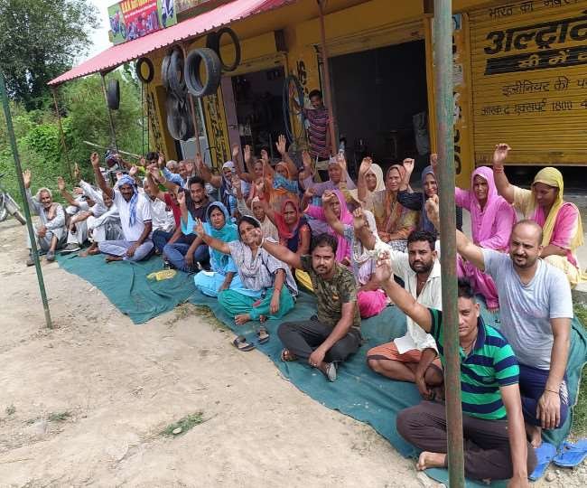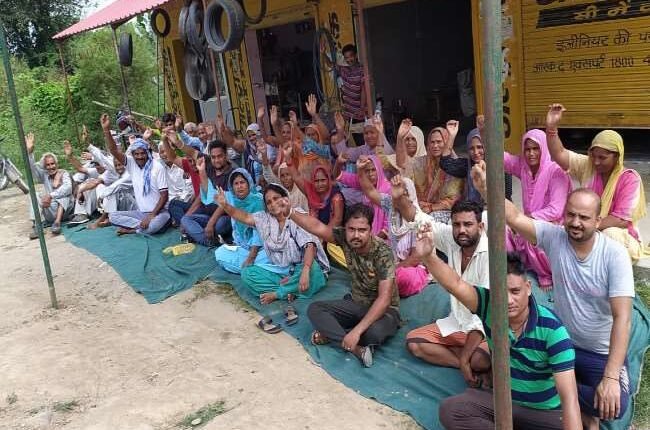 स्टोन क्रशरों के विरोध में किसानों ने दिया धरना
