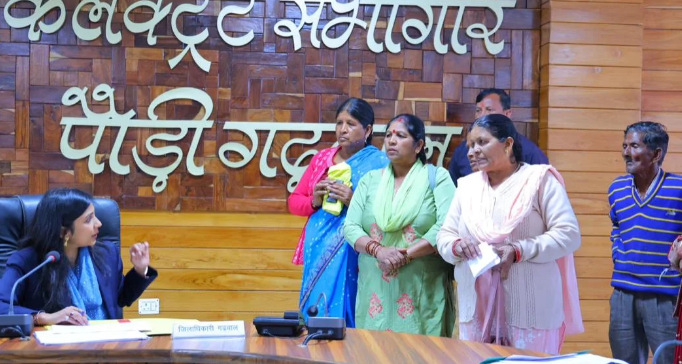 जनता मिलन कार्यक्रम में विकासखण्ड कल्जीखाल के थापली की प्रधान इन्दु देवी सहित महिलाओं ने लोवर थपली के 15 परिवारों को पर्याप्त पेयजल न मिलने की समस्या रखते हुए अलग पाइपलाइन की मांग की। इस पर जिलाधिकारी ने जल संस्थान के अधीक्षण अभियंता को मंगलवार पूर्वाह्न 10 बजे तक जूनियर इंजीनियर को मौके पर भेजकर आवश्यक कार्यवाही सुनिश्चित करने को कहा। विकासखण्ड पाबौ के ग्राम कोला की प्रधान बीना देवी ने बताया कि गांव के 70 कृषक परिवारों की फसल जंगली जानवरों से प्रभावित हो रही है, जिसके लिए 800 मीटर घेरबाड़ की आवश्यकता है। इस पर मुख्य कृषि अधिकारी को क्षेत्रीय टीम से स्थलीय निरीक्षण कराते हुए आवश्यकता अनुसार प्रस्ताव को जिला योजना में सम्मिलित करने को कहा गया। तहसील पौड़ी के सिमखेत निवासी सरोजनी देवी ने नाप भूमि से कब्जा हटाए जाने की शिकायत पर जिलाधिकारी ने उपजिलाधिकारी पौड़ी को निर्देश दिए कि कल ही राजस्व उपनिरीक्षक को मौके पर भेजकर वास्तविक स्थिति का स्थलीय निरीक्षण कर आख्या प्रस्तुत करते हुए नियमानुसार आवश्यक कार्यवाही सुनिश्चित करें। न्यायपंचायत कुण्डी के कृषि ऋण धारकों ने बहुद्देशीय साधन सहकारी समिति बाह बाजार देवप्रयाग में समिति के सचिव द्वारा वित्तीय अनियमितताओं की शिकायत पर जिलाधिकारी ने मुख्य कृषि अधिकारी व एआर को-ऑपरेटिव को संयुक्त रुप से जॉच कर रिर्पोट प्रस्तुत करने कहा। वहीं, पौड़ी के अपर चौपड़ा निवासी शिवानी व अन्य महिलाओं ने क्षेत्र में तेंदुए की सक्रियता एवं पशुओं पर हमलों की जानकारी दी, जिस पर वन विभाग को तत्काल टीम भेजकर आवश्यक कार्यवाही सुनिश्चित करने को कहा गया। इसके अलावा अन्य शिकायतों पर जिलाधिकारी द्वारा सम्बंधित अधिकारियों को प्राथमिकता के अधार पर कार्यवाही सुनिश्चित करने को कहा गया।
