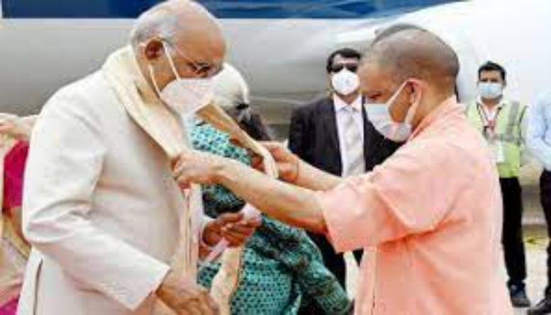राष्ट्रपति राम नाथ कोविन्द अपनी धर्मपत्नी सविता कोविन्द, पुत्री स्वाति कोविन्द के साथ गोरखपुर एयरपोर्ट पहुंचे, मुख्यमंत्री योगी ने किया स्वागत