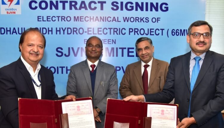 एसजेवीएन ने 66 मेगावाट की धौलासिद्ध परियोजना के इलेक्ट्रो मैकेनिकल कार्यों के लिए अनुबंध समझौते पर किए हस्ताक्षर