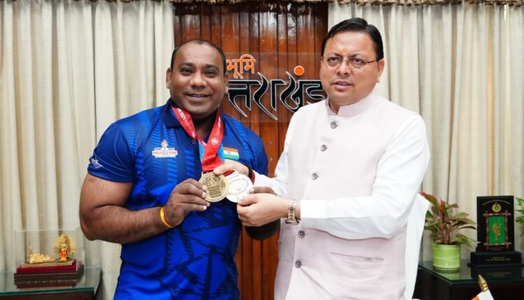 Dehradun: मुख्यमंत्री श्री पुष्कर सिंह धामी से शुक्रवार को मुख्यमंत्री कैम्प कार्यालय में वेटलिफ्टर श्री मुकेश पाल ने भेंट की। श्री मुकेश पाल ने अमेरिका के बर्मिंघम (अलाबामा) में 27 जून से 07 जुलाई, 2025 तक आयोजित वल्र्ड पुलिस एंड फायर गेम्स में पावरलिफ्टिंग स्पर्धा में उत्कृष्ट प्रदर्शन करते हुए भारत के लिए रजत एवं कांस्य पदक जीतकर देश और उत्तराखंड का नाम गौरवान्वित किया है। श्री मुकेश पाल वर्तमान में सीआईडी, हल्द्वानी में उपनिरीक्षक के पद पर कार्यरत हैं। उनकी इस उल्लेखनीय उपलब्धि पर मुख्यमंत्री श्री पुष्कर सिंह धामी ने उन्हें हार्दिक बधाई दी तथा उनके उज्ज्वल भविष्य की कामना की।