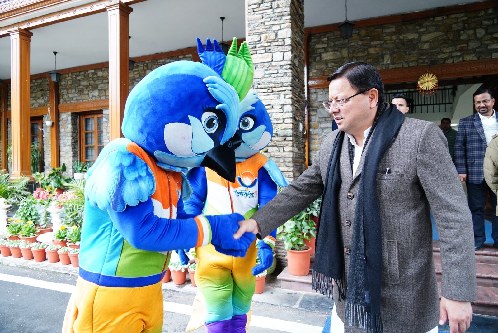 38वें राष्ट्रीय खेल में लोगों के आकर्षण का मुख्य केन्द्र रहा शुभंकर ‘मौली’ राष्ट्रीय खेलों के समापन के बाद सीएम आवास पहुंचा।