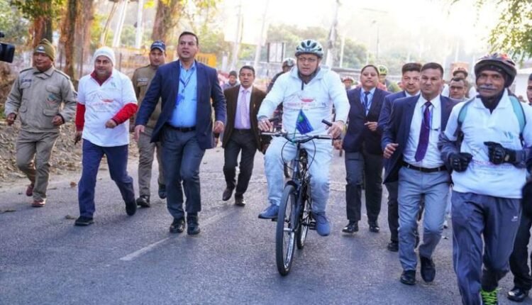 देहरादून :उत्‍तराखंड के मुख्‍यमंत्री पुष्‍कर सिंह धामी मंगलवार को तड़के देहरादून की सड़कों पर साइकिल चलाते दिखे। इस दौरान उन्‍होंने युवाओं को फ‍िट रहने का मंत्र भी दिया। मौका था मसूरी विंटर लाइन कार्निवाल के तहत साइकिल रैली आयोजन का। इस दौरान मुख्‍यमंत्री पुष्‍कर सिंह धामी ने रैली का शुभारंभ किया।